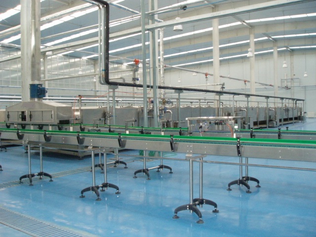产品的杀菌和冷却处理;不锈钢结构,高分子耐高温专用网链,PLC程序控制、变频无级调速,本机适用于各种金属罐、
